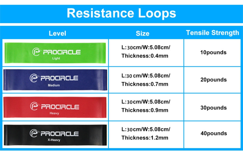 PROCIRCLE Resistance Workout Bands Loop Band Set for legs and butt Physical Therapy Fitness Exercise 12 * 2 inches