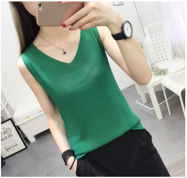 2018 Free Shipping New Hot Sale Sexy Pure Color silk Loose V-Neck Knitted suspender Bright silk tank Top