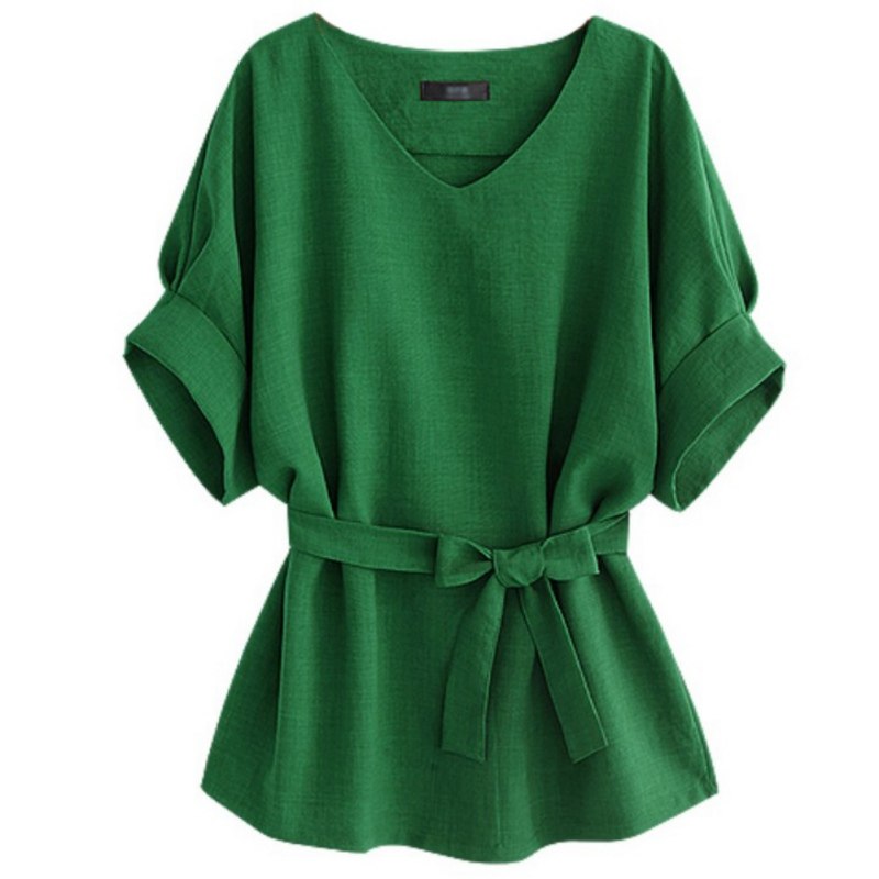 New Hot Sale 4 Colors Women Fashion Arrival Female Linen V-Neck Short Sleeve Short Sleeves Stylish T-Shirts