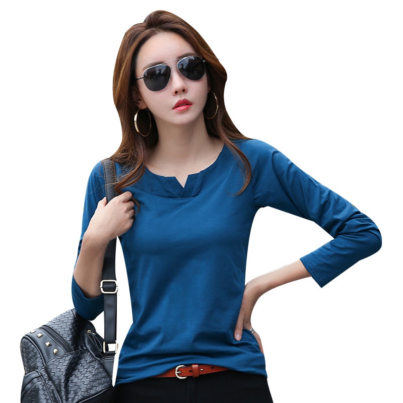 Autumn women t shirt v neck long sleeve tee shirt women cotton basic t-shirt women plain simple t Shirt for women tees top CS362