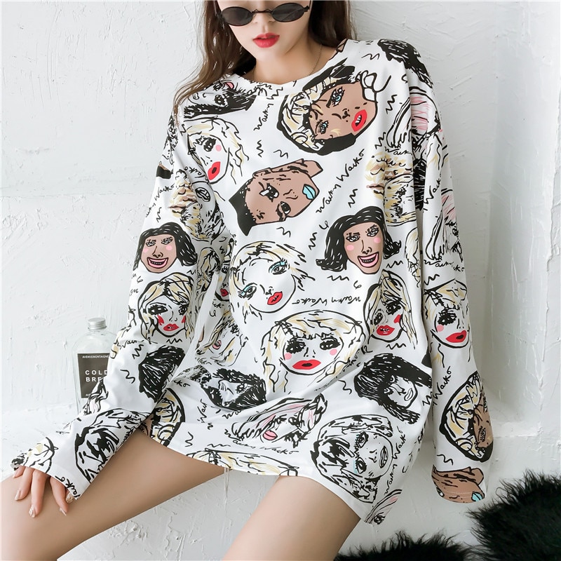 KYMAKUTU 4 Styles Korean Personality BF style Print T Shirt Women 2018 Autumn New Vogue Long Sleeve Tees Female Street Wear