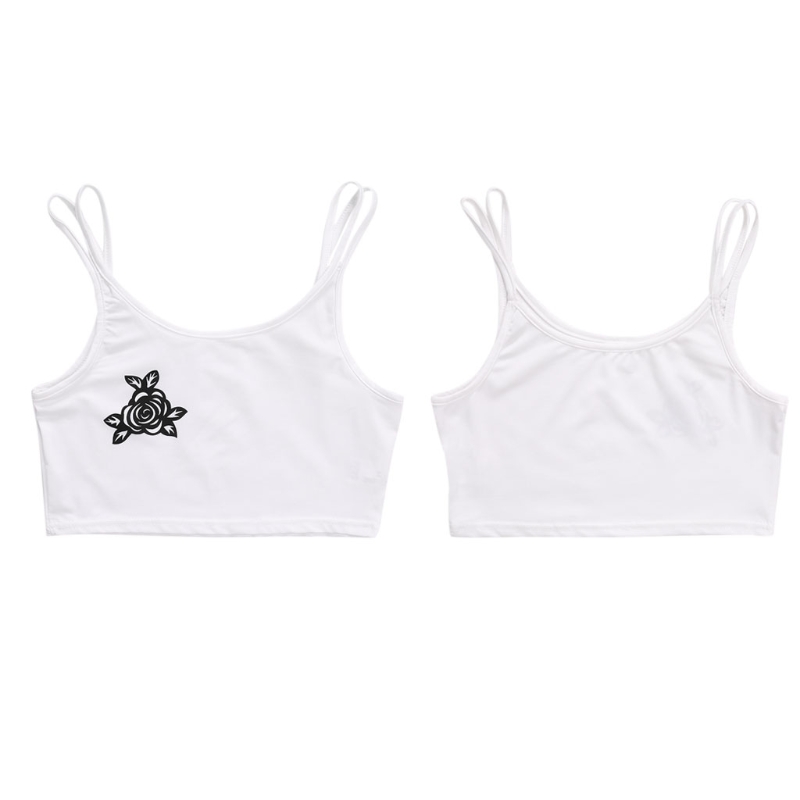 Womens Rose Flower Solid Color Tank Shirt Basic Party Sleeveless Short Crop Top