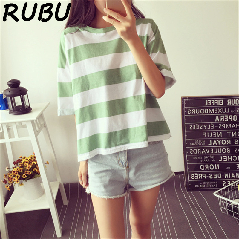 RUBU Summer Women t shirt Stripe Printed Casual Short Sleeve O-neck Ladies Tops 2018 Women’s Plus Size XXL Femme Top 5VB108