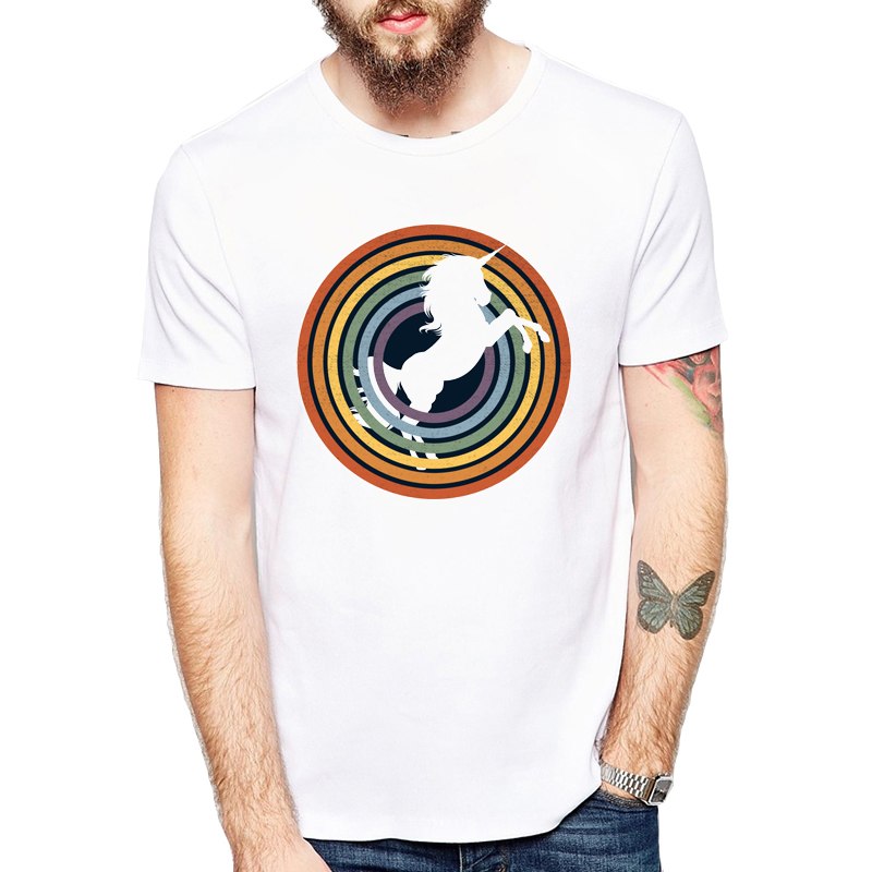 2019 Summer Fashion Men T-Shirt Funny Cute Unicorn Rainbow T Shirt Printed Tops Tees Dominant Round Collar