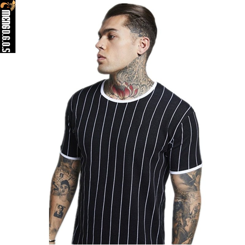 2018 Summer New T-Shirt Men Casual Slim Fit O-neck Fashion vertical bar Letter Print Tops Plus Size Tees Brand Clothing